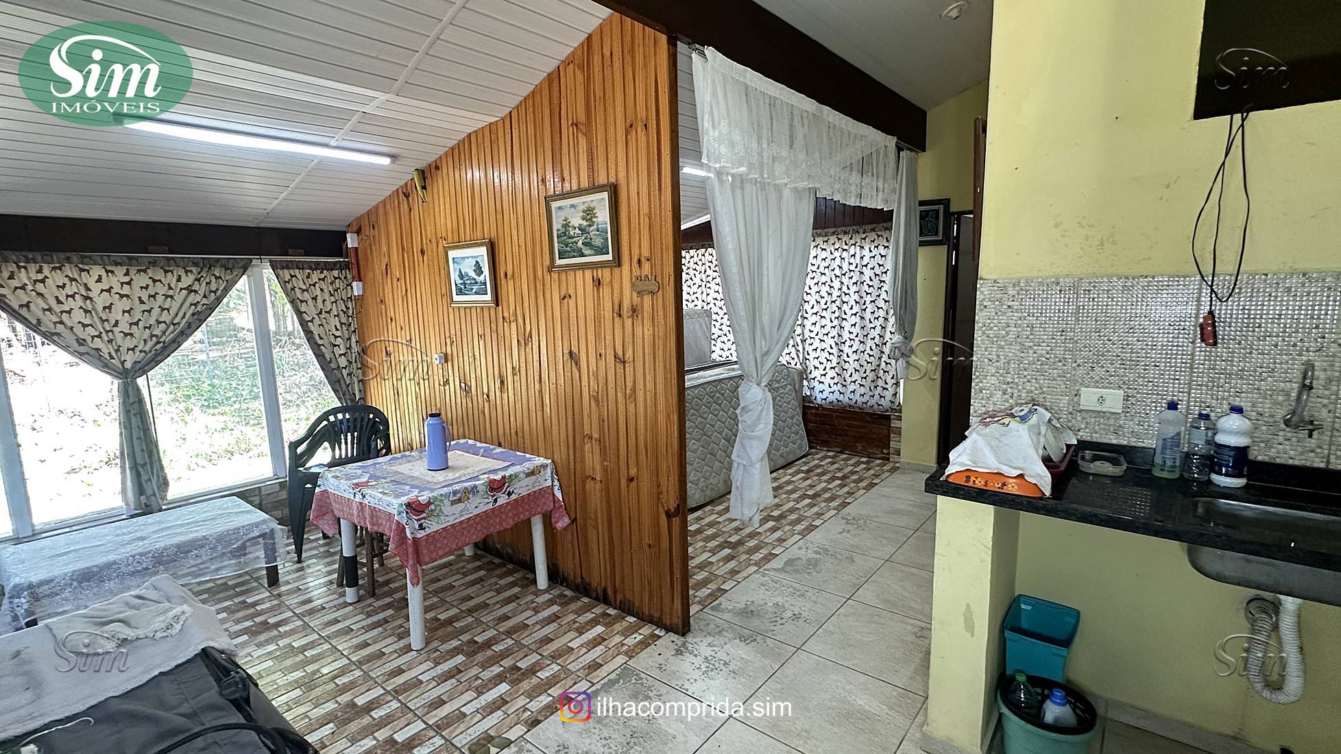 DESCRIÇÃO: Casa forrada em pvc, contendo 1 dormitório, sala e cozinha integrados, banheiro, quarto de despejo, área de serviço e pequeno galpão.